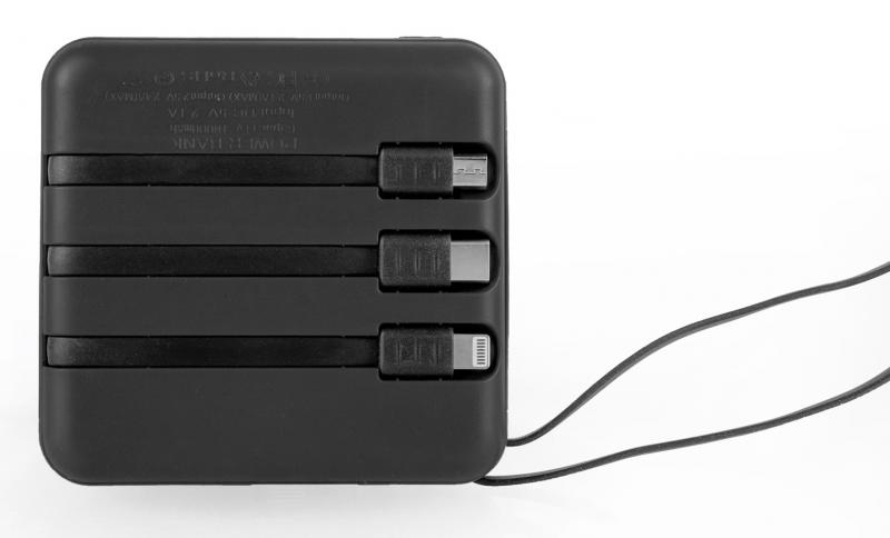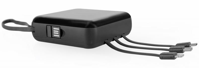 Powerbanka kompaktních rozměrů s kapacitu 10 000 mAh. Díky čtyřem zabudovaným výstupním kabelům s konektory USB micro, USB Type C, Lightning a USB se stane skvělým pomocníkem pro dobíjení vašich elektronických zařízení. Každý uživatel zajisté ocení dvě výkonné LED diody a poutko.